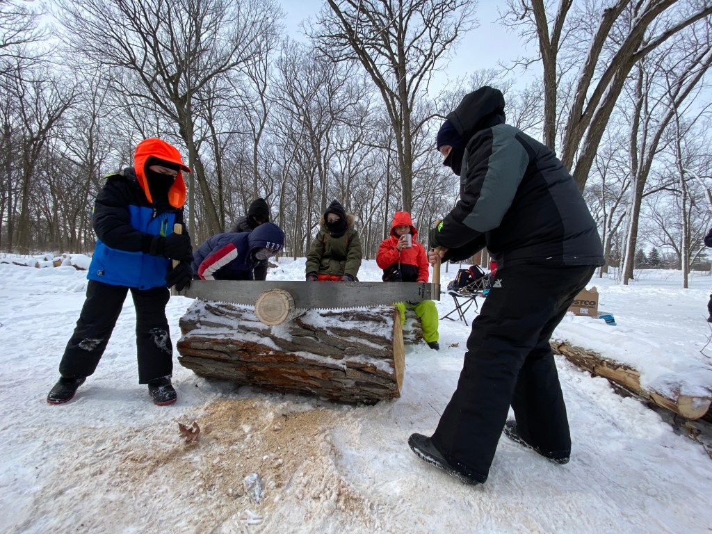 On the agenda: Knots, First Aid, Signaling, Fire Starting, Bear Bags, AXE THROWING!, Team Building, Sled Race, Lashings.