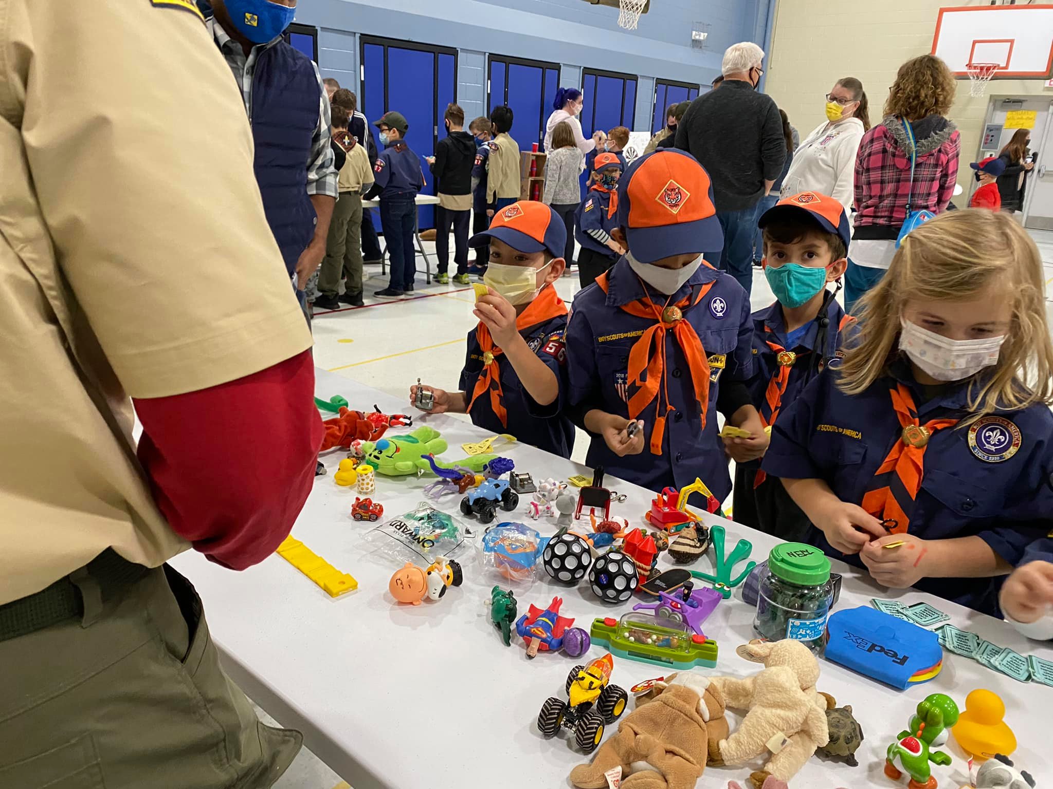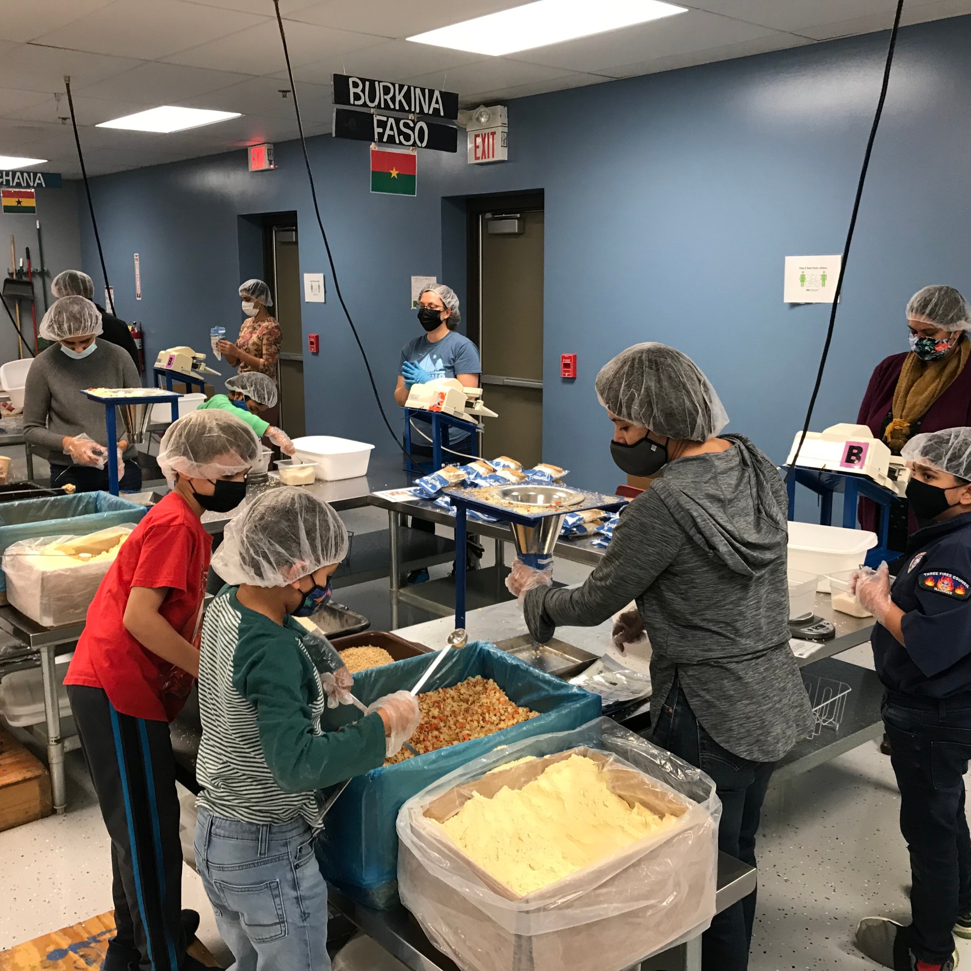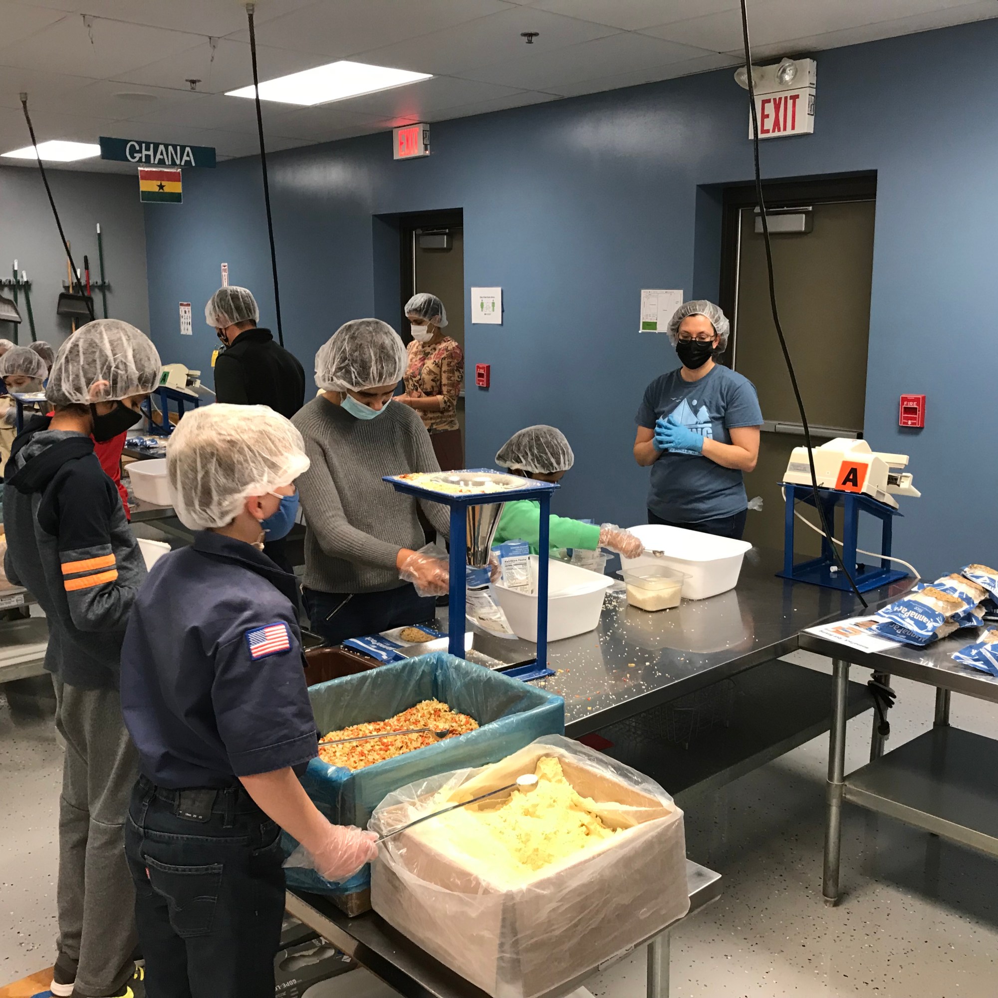 In November, about 15 Scouts and their parents volunteered at Feed My Starving Children. The meals we packed help feed kids and families around the world. One of the great ways Scouts learn to help others.