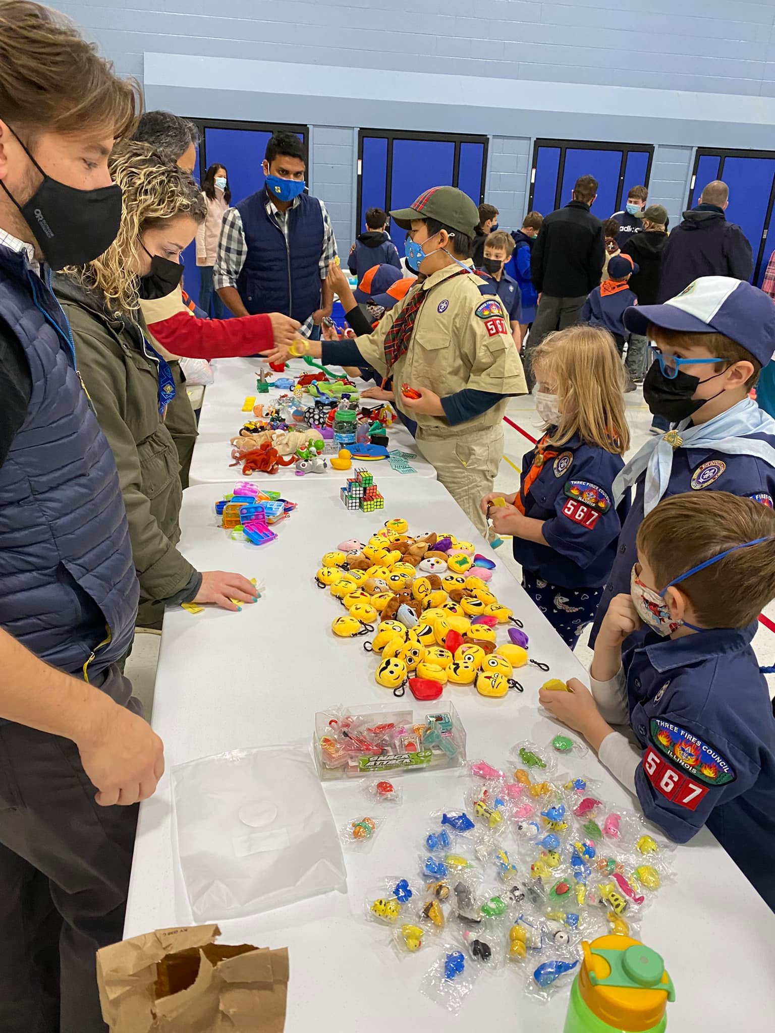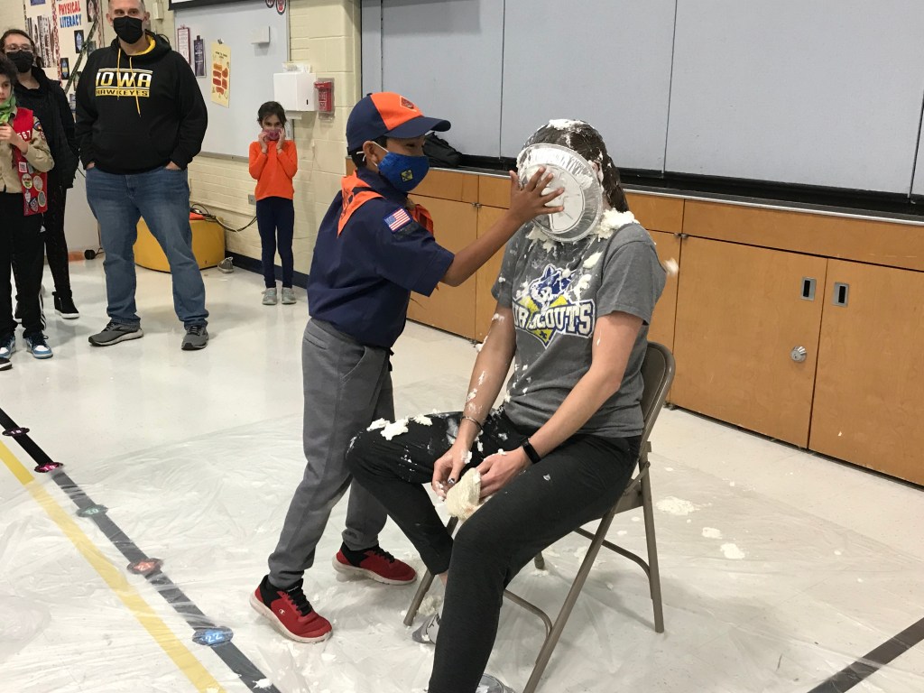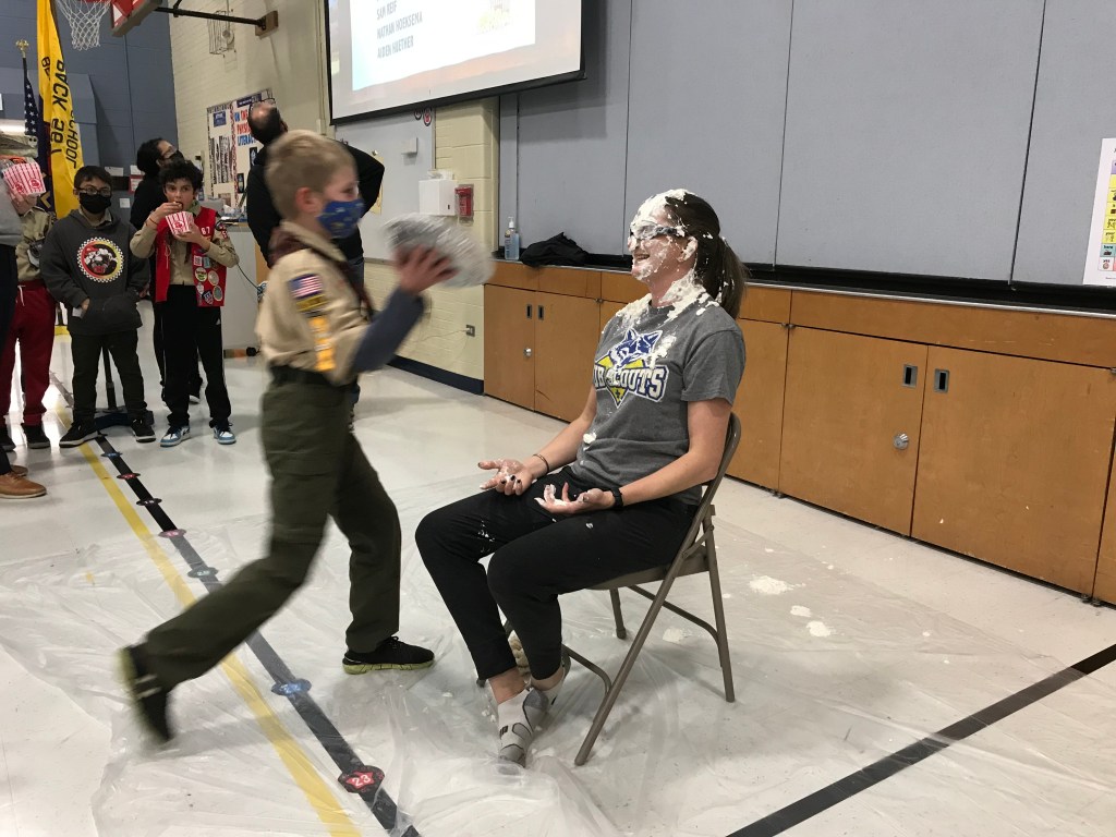 What an AMAZING year for our annual Popcorn fundraiser! And once again Cubmaster Dana took it like a champ with ELEVEN pies in the face from our top-selling Scouts!