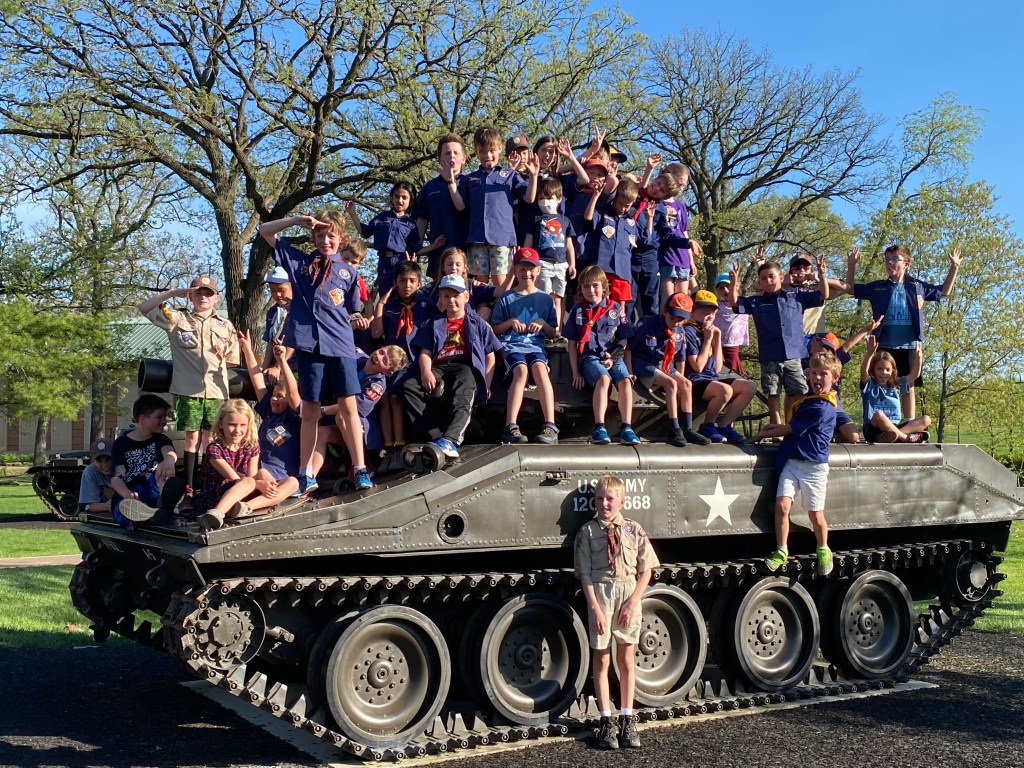 What an excellent way to finish the Y2021-2022 Cub Scout season! We had around 75 parents, Cub Scouts, and former Cub Scouters from troops that joined us at Cantigny. It was a jam-packed program and we made it through with gusto. To all the parents and leaders, thank you for making this happen. The trading Post, Checkin Desk, Grilling Station, Dinner, Desserts, Meal Station, S’mores, Dutch Ovens, Lemonade Stand, Campfire, Donuts & Coffee, and the Awards would not have happened without you!