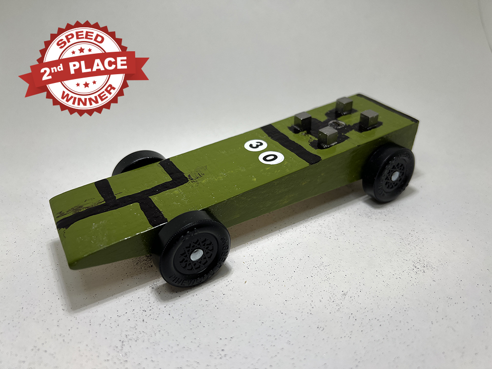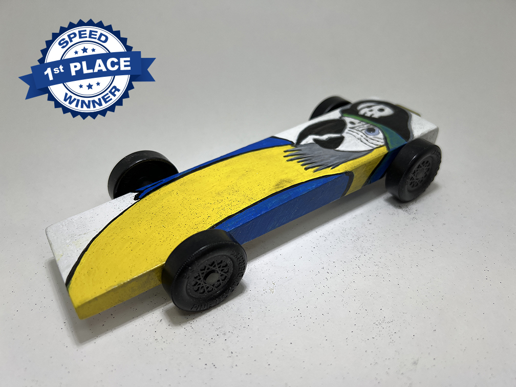 What an amazing job all the Scouts did on their Pinewood Derby cars! Below are the top 3 winners for both speed and design for each Den rank plus the honorable mentions. As a reminder, if a car wins for speed, we have to remove them from the running for best design.